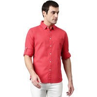 Dennis Lingo Men's Cotton Solid Red Slim Fit