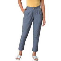 Aurelia Grey Solid Cotton Regular Trousers Fo