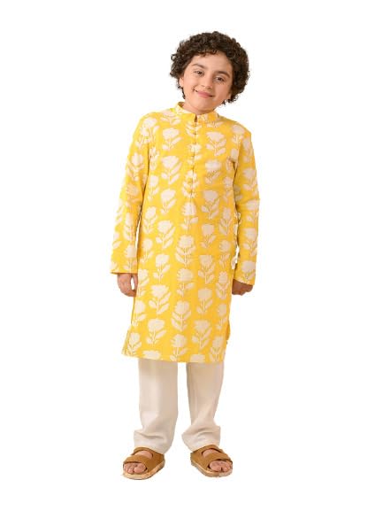 Pspeaches Boys Floral Printed Pure Cotton Kur