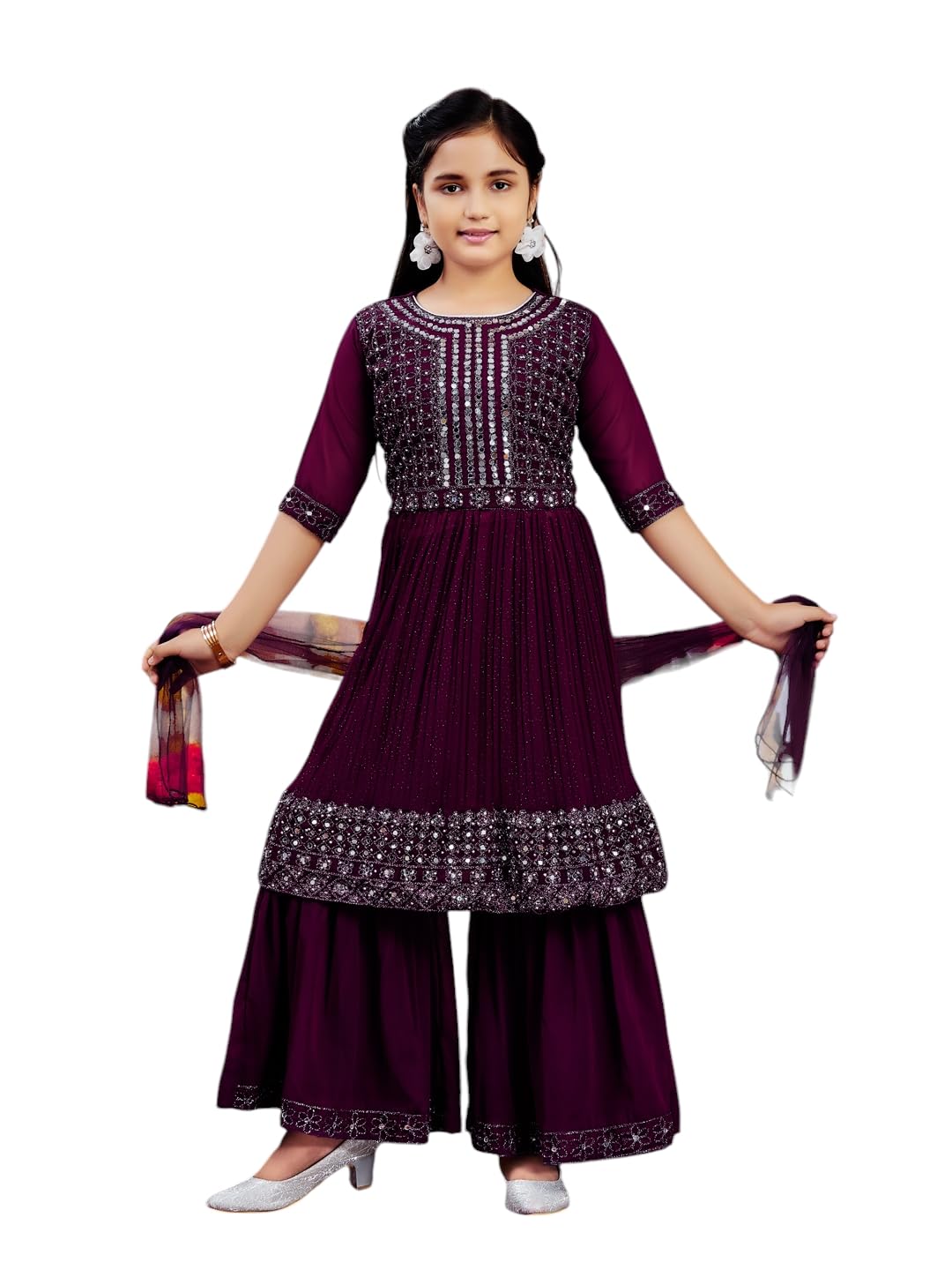 Aarika Girls Ethnic Wear Purple Colour Mirror
