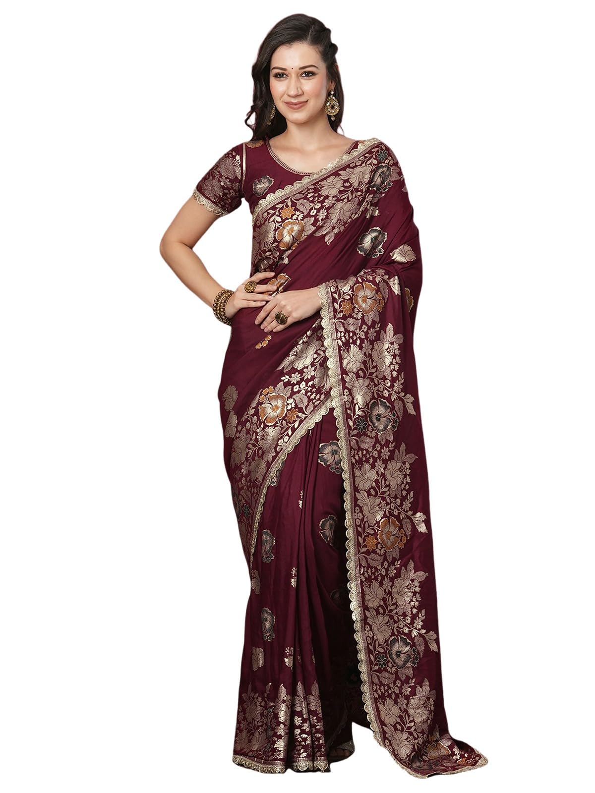 Satrani Women's Cotton Silk Banarasi Jacquard