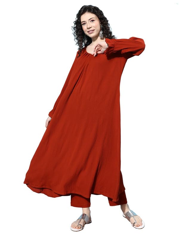 Varanga Women Rust Colour Bishop Sleeve A-Lin