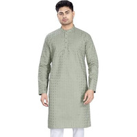 • Divisive Men's Thread Embroidered Cotton Only Slim Fit Kurta (Dkrt1092_4Xl_Olive)