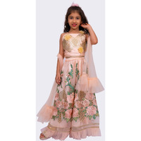 • Elaisha Woven Sleeveless Embellished Top & All Over Embroidered Lehenga With Dupatta-peach