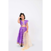 • Elaisha Girls Brocade ruffled Sleeve Lace Embellished Top, Lehenga & Tissue Dupatta Set - Mauve
