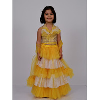 • Elaisha Sleeveless Sequin Top With Lehenga & Dupatta Set - Yellow & Off White