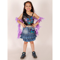• Elaisha Girls Leather Top & Layered Denim Skirt Embellished With Butterfly Patch And Studds - Black & Blue