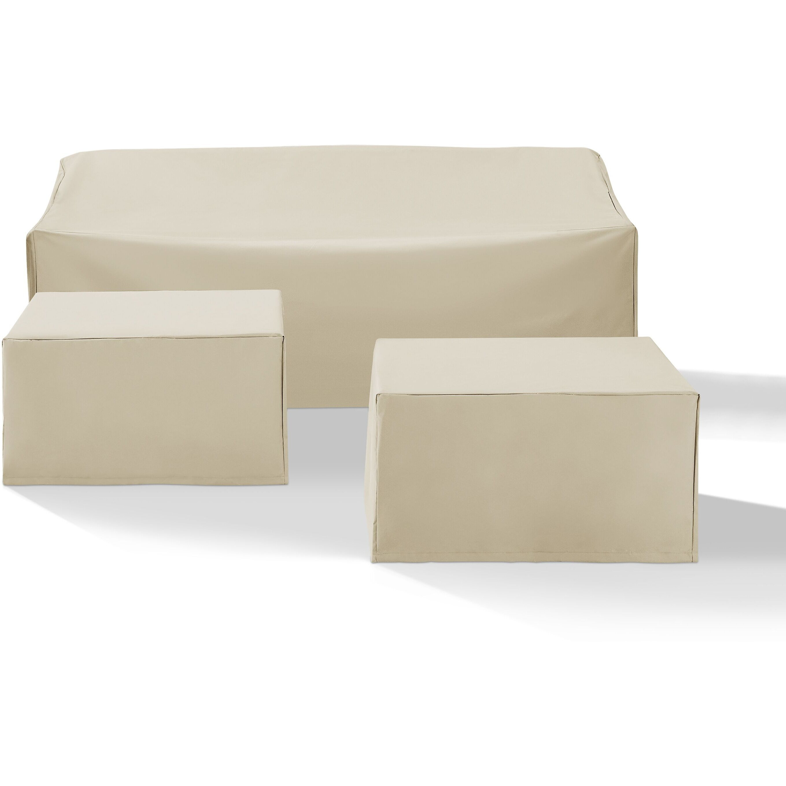 • <li>Protects furniture from sun, rain, snow, dirt, sap and more</li><li>Covers are waterproof</li><li>Made from heavy gauge, reinforced vinyl</li><li>Tan vinyl</li><li>Puncture resistant</li><li>Scratch resistant lining</li><li>Sewn-in drawstrings secure covers to furniture</li><li>Fully assembled</li>Polyester 100.00%<li>PRIMARY COLOR:Tan</li><li>COLLECTION:Furniture Covers</li><li>INCLUDESSofa, 2 Square Table/Ottoman</li><li>CONSTRUCTION MATERIAL:Polyester 100.00%</li><li>ASSEMBLY REQUIRED:N</li><li>Anti-Tip Hardware:N</li><li>ISTA Certification:ISTA 3A</li><li>Product Dimension:0H, 0W, 0D, 0WT</li><li>Prop 65 Compliant:WARNING: This product can expose you to chemicals including wood dust and lead, which are known to the State of California to cause cancer or birth defects or other reproductive harm. For more information go to www.P65Warnings.ca.gov/furniture . For more information go to www.CrosleyBrands.com/californiaproposition65</li>