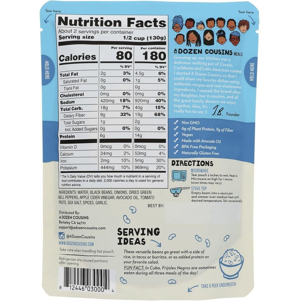 A Dozen Cousins Cuban Black Beans, Mild, Made With Avocado Oil, Vegan Friendly, Ready In 60 Seconds, Gluten Free & Non-Gmo, 10 Ounce (Pack Of 6)