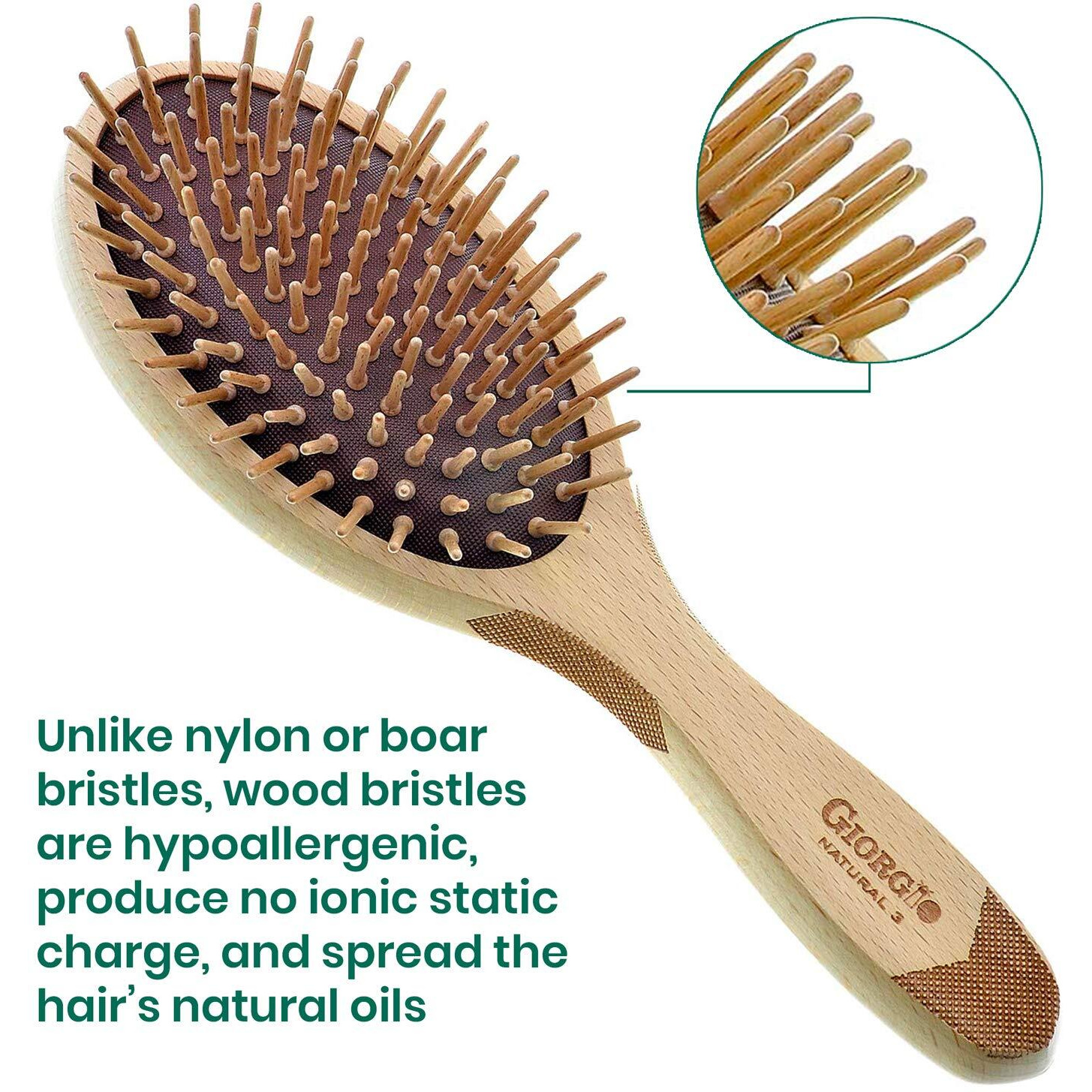 About Giorgio Naturals: Sustainably Made From Ultra-Light Durable And All-Natural Beechwood Laser Engraved For Enhanced Grip. The Beechwood Bristles Allow For A Gentle Anti-Static Detangling Experience Eliminating Any Pulling Or Hair Breakage. The Air-Cushioned Base Ensures A Comfortable Glide While Stimulating The Scalp And Spreading Natural Oils. Suitable For All Hair Types Lengths And Textures. Brush Care - To Remove Excess Hair Comb Thoroughly With A Hairbrush Cleaner. About Giorgio: We Are A Family Run Company With The Vision Of Developing Beauty Products For All Audiences In A Responsible And Sustainable Fashion. Weve Avoided Harmful Heavy Metals And Nylon Products In Order To Produce Quality Products Out Of Wood And Cellulose Acetate - Safe For The Consumer Eco-Friendly And Sustainable Trusted Materials. Our Eco Brush And Customer-First Attitude Has Led Us To Constantly Try And Improve Our Product And Brand Eventually Developing Our Magnum Opus The Giorgio Naturals Collection. This Collection Is At Its Core A Vegan Brush; Made Entirely Of Wood With A Silicon Cushion It Is A Plastic Free Extremely Durable Product. They Best Embody Our Eco Friendly Hair Brush Design With An Ergonomic Grip Wood Bristles And Wooden Paddles.