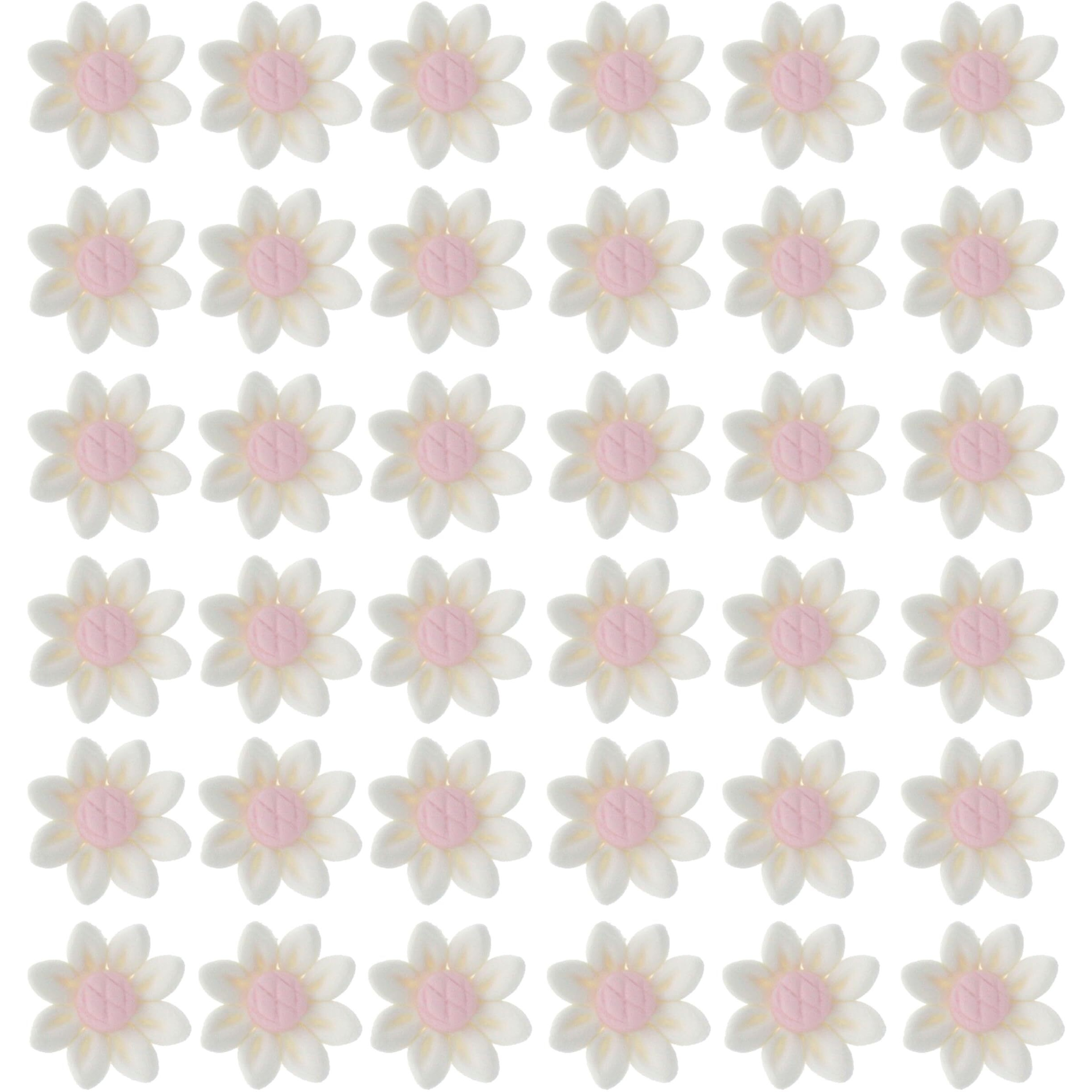 Global Sugar Art Daisy Sugar Cake Flowers, White Unwired, Small, 36 Count By Chef Alan Tetreault. These Ready-Made Beautiful Handmade Gumpaste Flowers Are A Perfect Compliment To Any Cake, Cupcake Or Cookie. No Wire. Box Of 3 Individual Trays, Each With 12 Blossoms (36 Blossoms Total). Each Individual Flower Measures Approximately 3/4 Inch In Diameter. Flowers Are Shown On A Standard Cupcake. For Decorative Purposes Only As Some Flowers May Contain Non-Edible Floral Wire, Stamen Or Pearls. Gumpaste Sugar Cake Flowers Are Brittle And Easily Damaged In Shipping. While We Do Our Best To Pack Them For You, Some Breakage Is Inevitable. Please Order Extra To Insure You Have Enough. Size, Shape And Color Of Flowers May Vary. Kosher Pareve Star-K