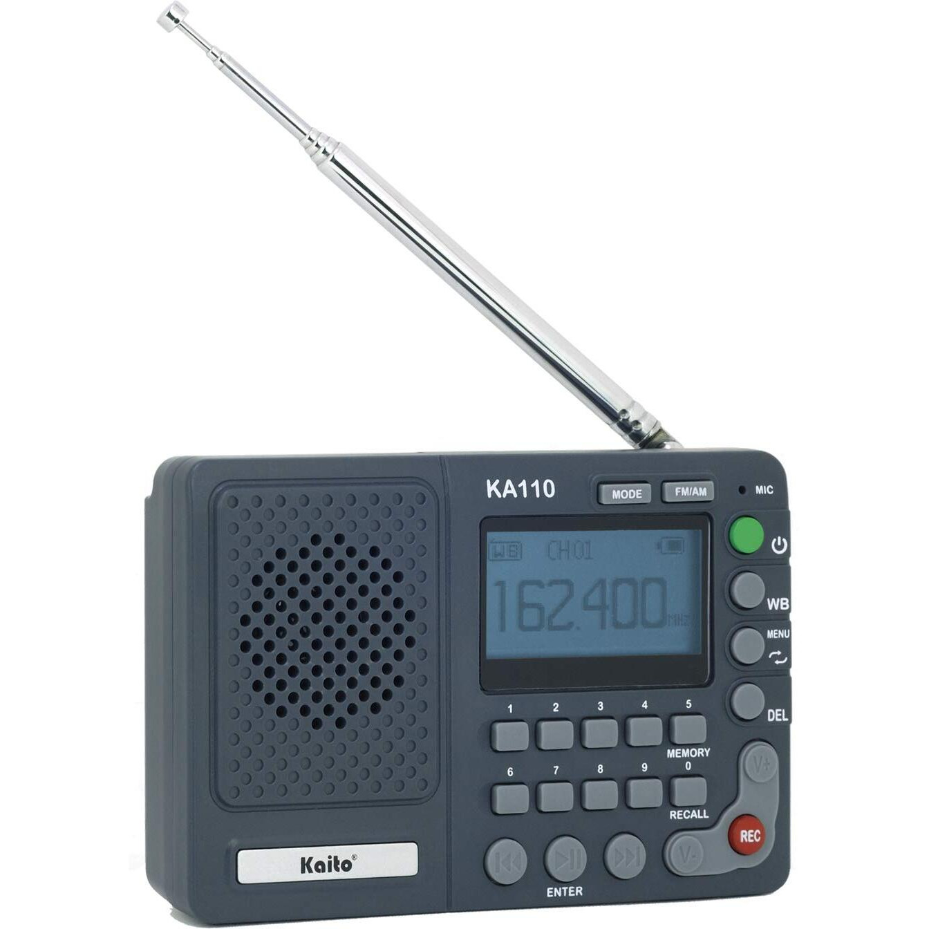 Powered By A Single 850 Mah Li-Ion Rechargeable Battery (Included), The Kaito Ka110 Is A Digital Am/Fm Radio Receiver With Noaa Weather Channels, Which Provide Around-The-Clock Live Local Weather Forecast And All Hazardous Warnings In The United States And Canada. With Its Ultra-Compact Size And A Weight Of Less Than 5 Oz, The Ka110 Not Only Offers Comprehensive Am, Fm And 7 Noaa Weather Channels For News, Weather, Entertainment, Sports, And Talk-Shows, But Also Features An Mp3 Player With Built-In Micro-Sd Memory Card Reader (Micro-Sd Card Not Included, 8 Gb Maximum) And A Standard 3.5Mm Audio Input Jack For Directly Connecting To An Audio Device. The Radio Fits Easily Into A Pocket, A Purse, Or A Backpack, A Must-Have Companion To Keep You Entertained And Informed Wherever You May Be, Ideal For Travel And Outdoors Activities. Featuring A Digital Tuner With Enhanced Sensitivity, And Advanced Modern Solid-State Circuitry Design, Tuning Into Your Favorite Broadcast At Home Or While Travelling Has Never Been Easier, Let It Be Manual, Auto-Scan, Or Direct Keypad Entry. The Ka110 Has A Built-In Speaker That Delivers Loud, Dynamic And Crispy Sound As Well As A 3.5Mm Earphone Jack For Private Listening. Specifications: Battery: 850 Mah Lithium Rechargeable (Included) Fm Frequency Range: 87.0 - 108.0 Mhz Am: 520 Khz - 1,710 Khz Noaa Weather Channels: 7 (Pre-Set) Tuning: Manual, Auto, Direct Keypad Entry Or Ats Sleep Timer: 0-90 Minutes Fm Sensitivity (S/N=30 Db): < 3Uv Signal Selection: > 60 Db S/N Ratio: > 55 Db Supported Languages: Chinese (Simplified), English, Spanish Speaker: 4 Ohm / 3W Earphone: 3.5 Mm/32 Ohm Unit Size: 4 X 2 X 1 Inches Weight: 4.7 Oz Whats In The Box: Ka110 Radio Rechargeable Battery Bl-5C Micro-Usb Charging Cable English Manual