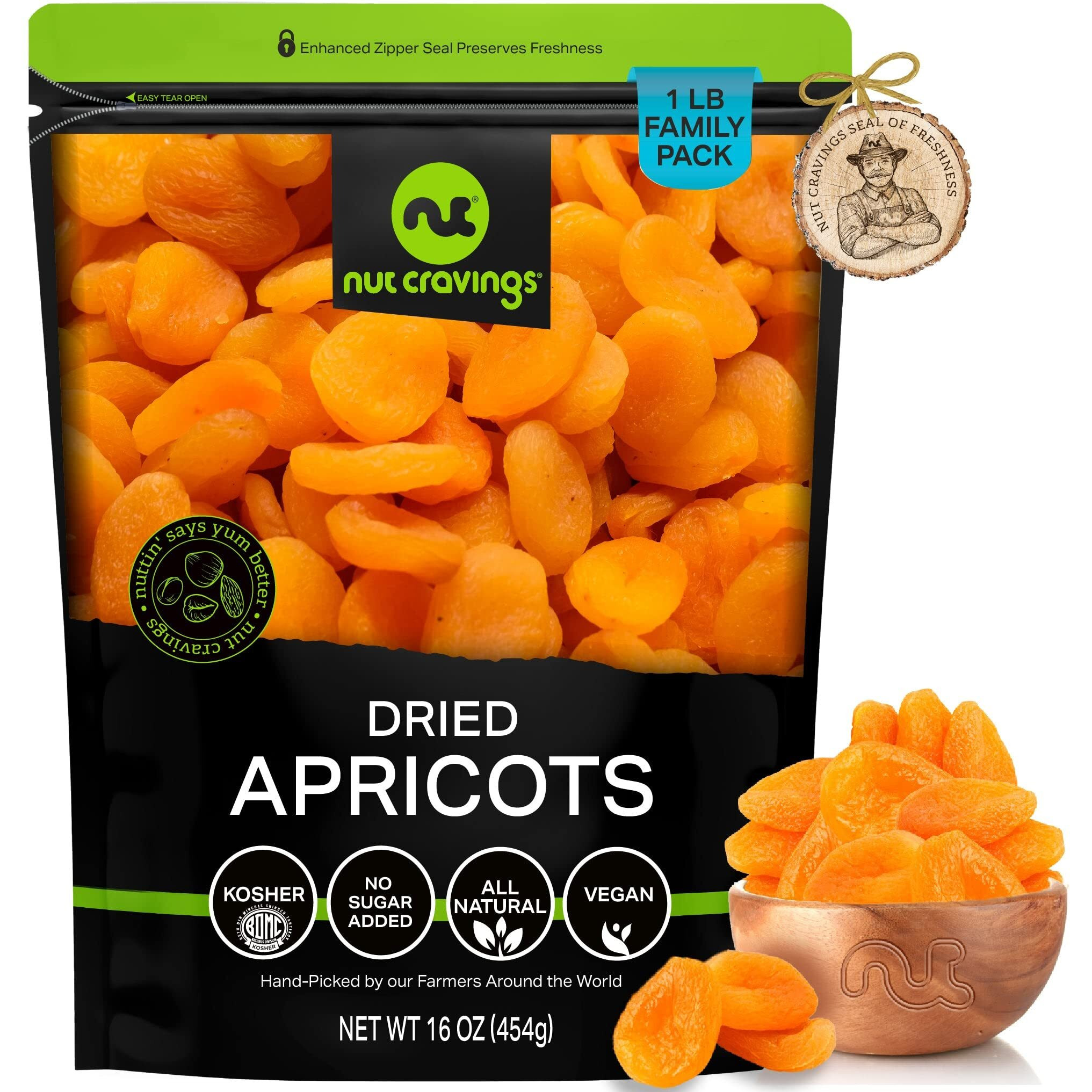 Nut Cravings Dry Fruits - Sun Dried Turkish Apricots, No Sugar Added (16Oz - 1 Lb) Packed Fresh In Resealable Bag - Sweet Snack, Healthy Food, All Natural, Vegan, Kosher Certified