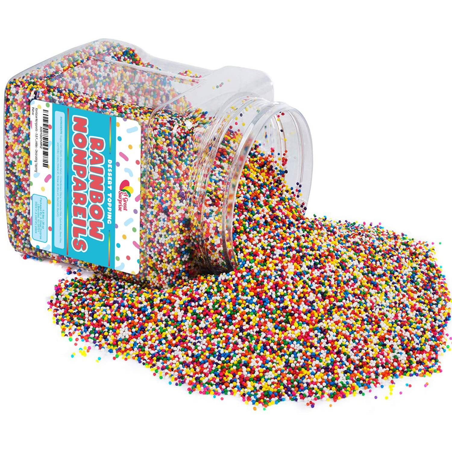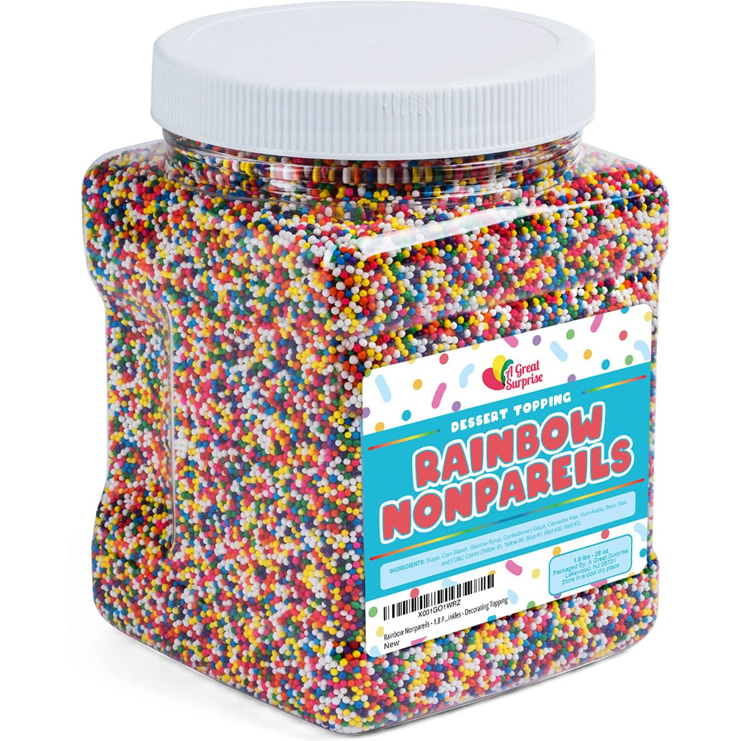 Enjoy The Fun And Sweet Taste Of Rainbow Nonpareil Sprinkles With Our Bulk 1.8 Pound Bag - Perfect For All Your Sweet Creations! Elevate Your Ice Cream Sundaes With A Great Surprise's High-Quality Rainbow Nonpareils, Which Are Perfect For Adding A Touch Of Tasty Goodness To Your Desserts. Get Creative With Your Cake Decorating By Using Rainbow Nonpareil Sprinkles To Add Texture, Color, And Flavor To Your Baked Goods. Sprinkle Them On Top Of Frosted Cakes Or Mix Them Into Cake Batter For A Fun Twist. Take Your Cookies And Cupcakes To The Next Level With A Great Surprise Rainbow Non Pareils Sprinkles. Whether You'Re Making Classic Chocolate Chip Cookies Or A Batch Of Birthday Cupcakes, These Sprinkles Add The Perfect Finishing Touch. Whether You'Re Hosting A Party Or Just Enjoying A Sweet Treat At Home, Our Rainbow Sprinkles Are A Must-Have Ingredient For Any Dessert Lover. With 1.8 Pounds Of Sprinkles In Each Bag, You'Ll Have Plenty To Go Around! Items Are Repackaged In A Facility That May Contain Milk, Soy, Peanuts, Tree Nuts, Eggs, Wheat And All Other Allergens.