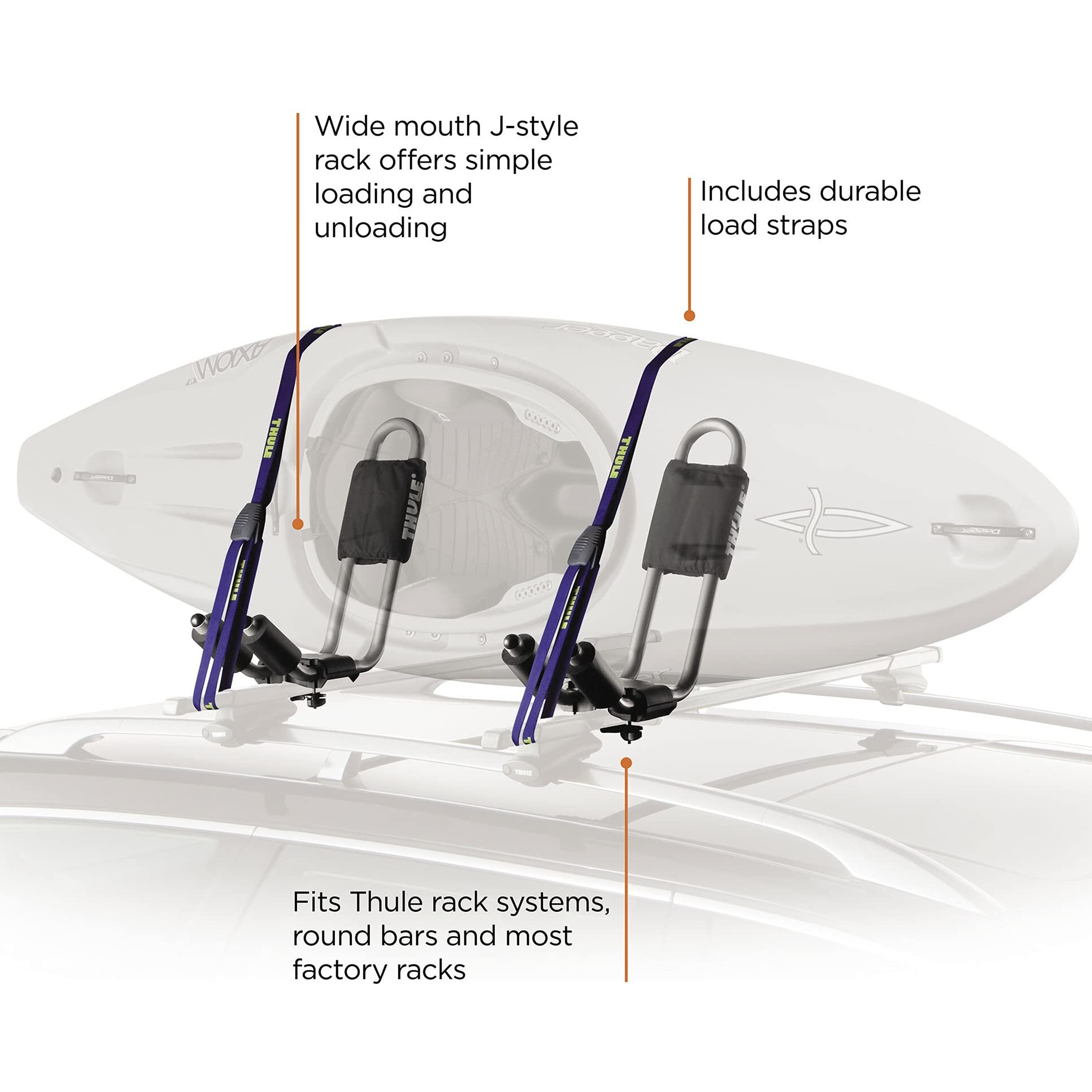 Spend More Time Out On The Water With The Thule Hullaport Rooftop Kayak Carrier. This High-Performance, Easy To Use Kayak Rack Features A Wide Mouth J-Profile For Simple Loading And Unloading. Thick All-Weather Pads Provide Maximum Kayak Protection While Durable Straps Keep Your Kayak Firmly Secured While In Transit. Each Kayak Roof Rack Comes With All Load Straps And Is Designed To Fit All Thule Rack Systems And Most Factory Racks. Confidently Transport Your Favorite Water Sport Gear With A Kayak Carrier From Thule.